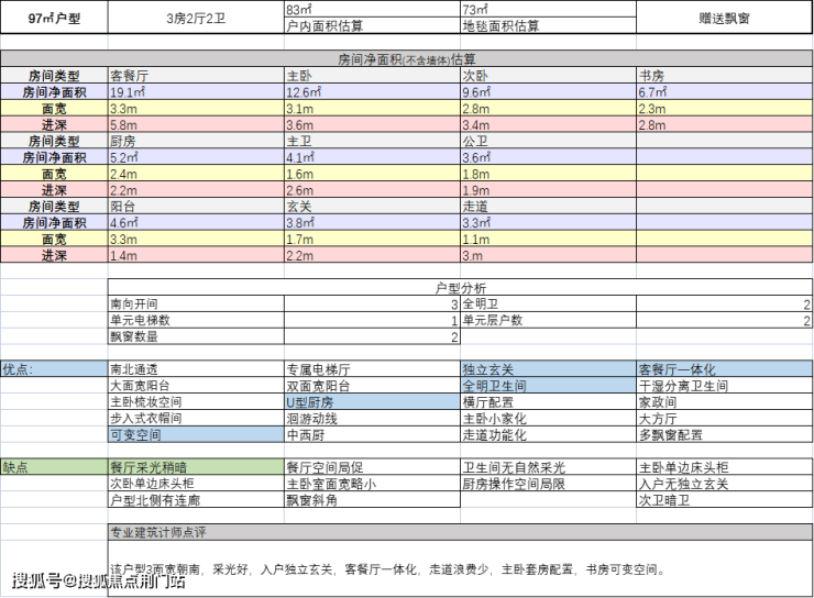 建面约97方户型: