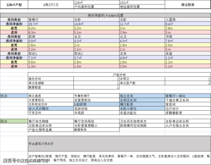 建面约128方户型: