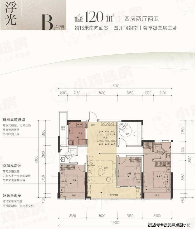 1、120B户型 | 四开间朝南的「流量王者」