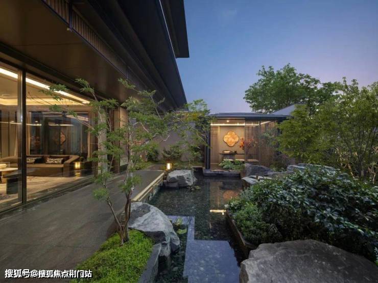 漫步于光影交织的幽静庭院,您将踏入一方充满诗意的天地。潺潺流水映照着婆娑树影,挺拔树姿为这片空间注入向上的生机,纵向延伸出无限的视觉张力。这座下沉庭院,不仅拉近了建筑与自然的情感共鸣,更使室内与景观紧密相连、和谐相融。每一扇窗户,都犹如框中的一幅生动山水画。