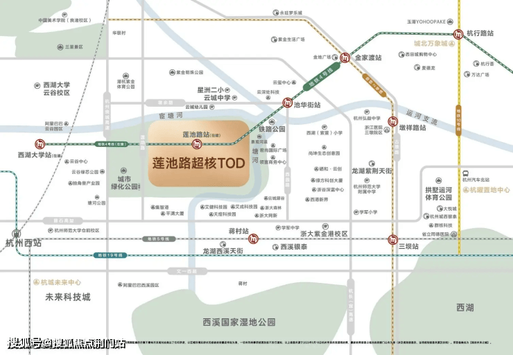 这里是全城罕见的“超核TOD”,4号线三期与规划中的20号线在此交汇,织就一张迅捷连接大杭州的轨交网络。