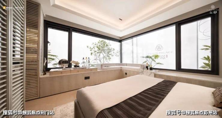主卧采用270度转角飘窗,不仅可以让室内洒满阳光,还能让你一睁眼就望到窗外的世界,很难让人不爱。