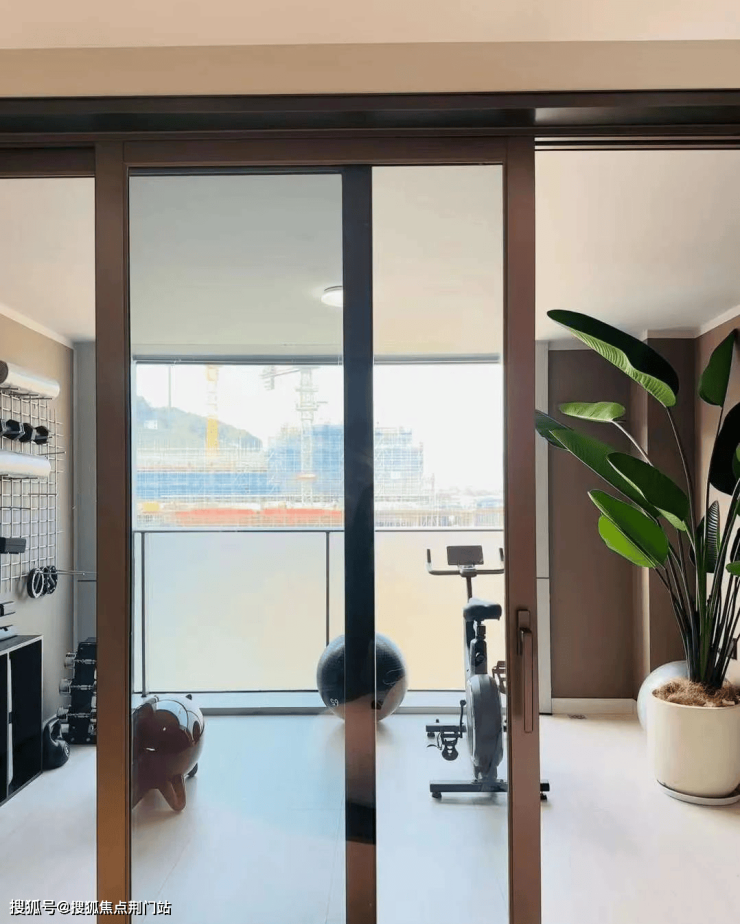 这座水庭也是一整面「水镜」,将中心的乌桕树、周围的超大白玻、精致的艺术雕塑都倒映其中。不止颜值高,这座生活馆,今后还会成为业主们日常都可以用到的配套,健身、会客、休闲,都能在这里实现。