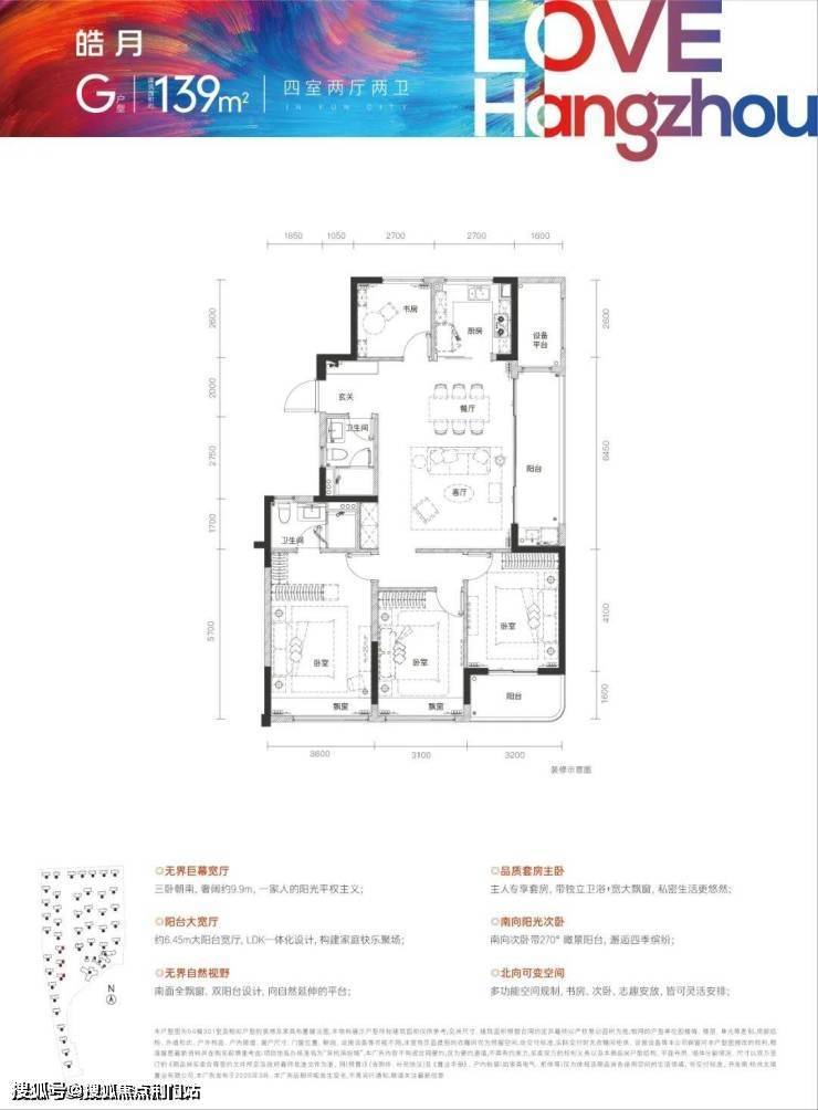 建面约139㎡大四房首次绽放。270°环幕瞰景,双阳台设计,让空间向风景打开;三卧朝南,演绎一家人的阳光平权主义。更有大阳台宽厅,安放家庭活动时光,爱和陪伴随时幸福上演。