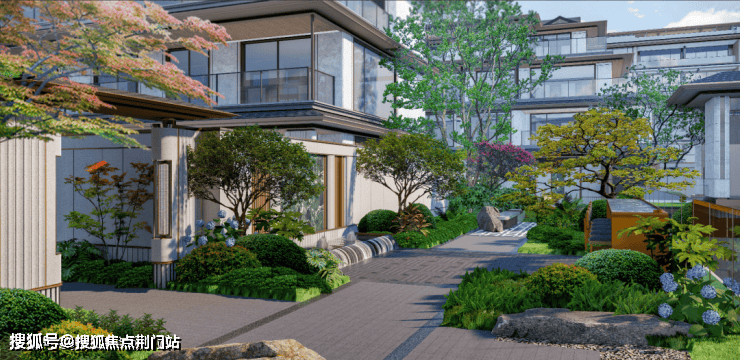 穿过廊桥,景致渐入佳境。曲径回廊、树影婆娑,浅溪沿石阶轻淌,仿佛步入宋代文人“曲水流觞”的雅集现场。巷弄徐徐展开,一街四巷两弄格局间,既有传统里坊的邻里守望温情,又不失现代社区的疏朗大气。