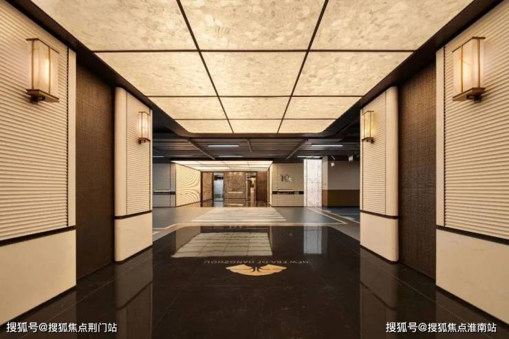 厅堂内大型水景艺术灯高悬于顶,以天为幕、气场大开,照映大理石地面,通体气派,传神东方宅邸的风骨。