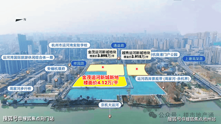 北面是越秀运启河樾府(纯叠墅准备入市中),东侧是6月金茂二期再度拿地,也是板块内地王;水街商业临运河而建,大运河对面就是限价3.8万的滨运锦上湾