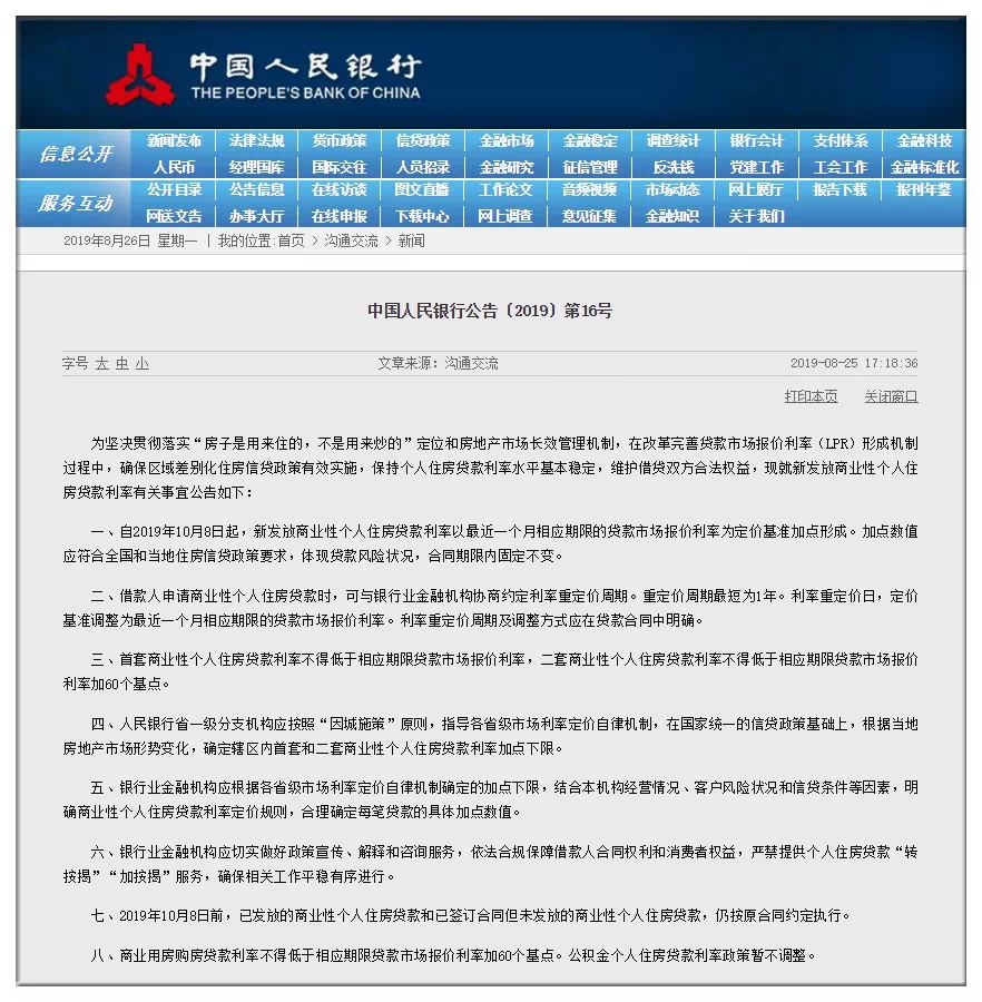 8月25日,央行通过官网发布公告,宣布从10月8日开始全面调整房贷利率计算方式。