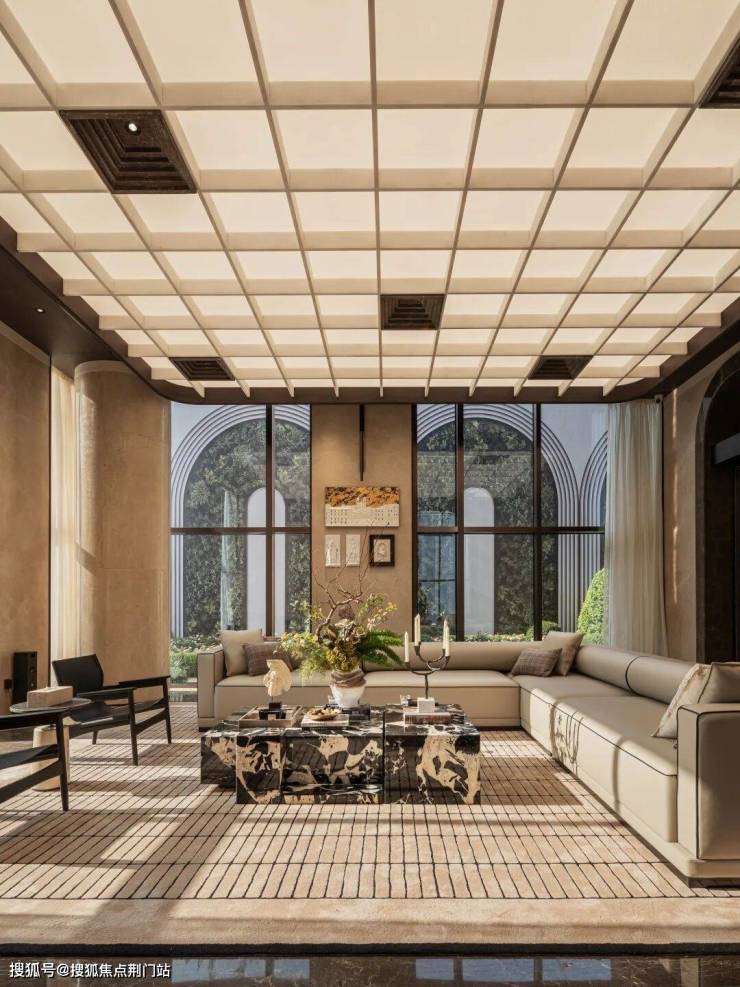 咏印明庐用自己的实践重新定义了下一个十年豪宅应有的样子:贝金米黄石材雕琢的意式拱券,搭配古铜色金属线条和大面玻璃,远看是运河畔一部恢弘的秩序史诗,近观则展现出东西方美学精髓的完美融合。