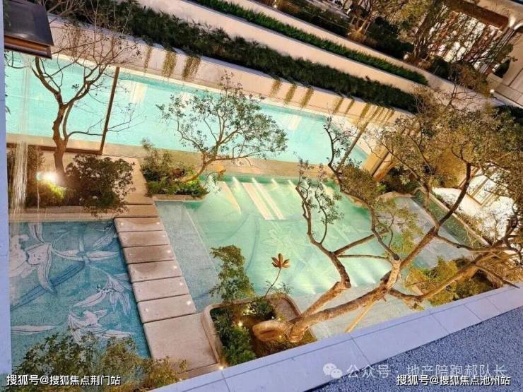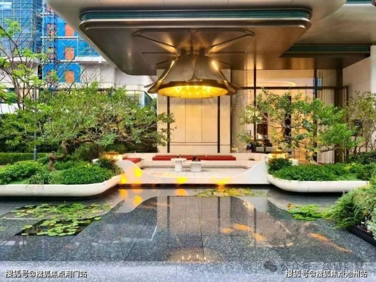 下沉式庭院巧妙借鉴自然山谷的形态,以叠水、绿阶、浮岛等元素精心构筑,呈现“飞瀑挂崖”的生动景致。庭院中央的女王画舫若隐若现于林水之间,业主可在此品茗赏景,尽享“都市女王”般的优雅与从容。