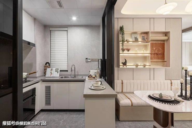 半开放式厨房设计 ,通过玻璃移门,随心开合,关闭隔绝油烟,打开后,结合岛台式设计,将厨房内外的空间界限打破,家人之间亲密互动,情感快速升温。 厨房内部更融入高定精装,从厨房凉霸到老板洗碗机/燃气灶/油烟机等高奢配置,加持生活的质感。