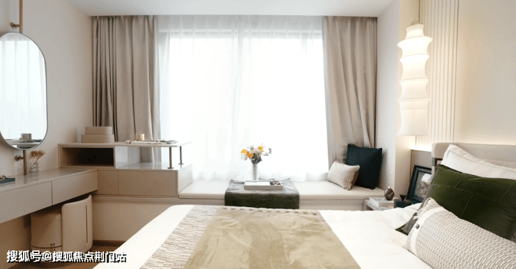 向南而立的套房式主卧,配置独立卫浴、衣帽间、观景飘窗,融合奢华内敛及摩登优雅的风格呈现,更将独属的私密与尊崇感推向精致之境。