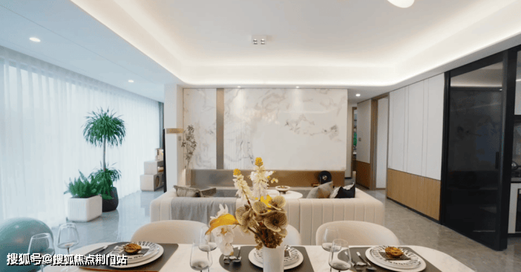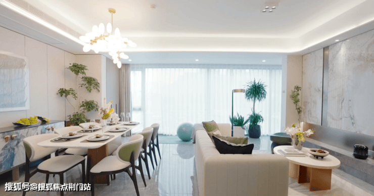 进入样板间,约12.7m四开间朝南布局,形成IMAX级超尺采光面,全景视野,让空间的开阔与舒适尽皆展现,公园与水岸的风景自成日常生活的背景。
