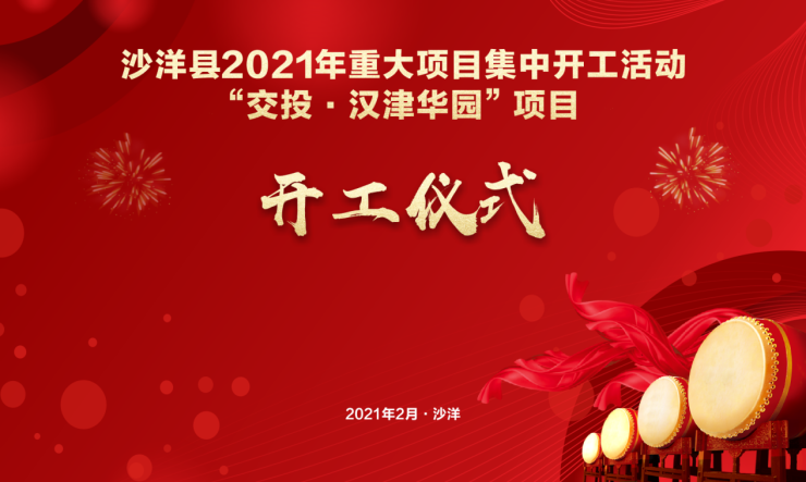 千亿交投·首著沙洋,2月25日早,沙洋县2021年重大项目集中开工活动暨“交投·汉津华园”项目开工仪式在项目地隆重举行。