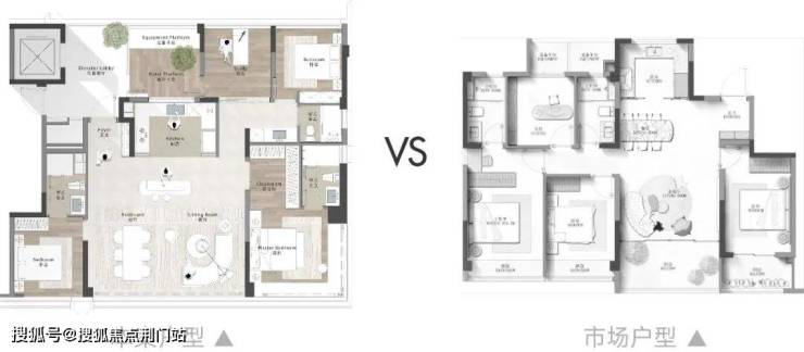应对市场相同面积段下的产品,我们利用对封闭阳台等的计容规则变化,挖掘和提升户型产品的功能潜力,在满足置业者刚性需求的前提之下,试图提供空间多样性组合的可能,也因此赋予户型多样的居住性格。