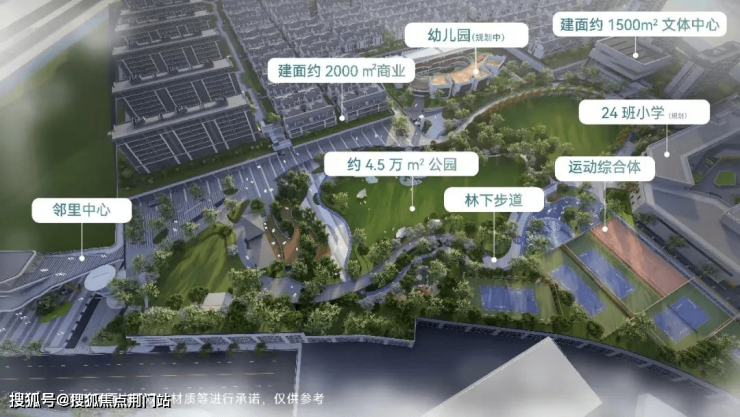 紧紧围绕着“风之谷”公园的,是建面约2000m²的商业街、是12班幼儿园、24班小学(注:新房销售阶段,不承诺学区,具体以官方公布为准)、是邻里中心、户外运动场以及文体中心等。
