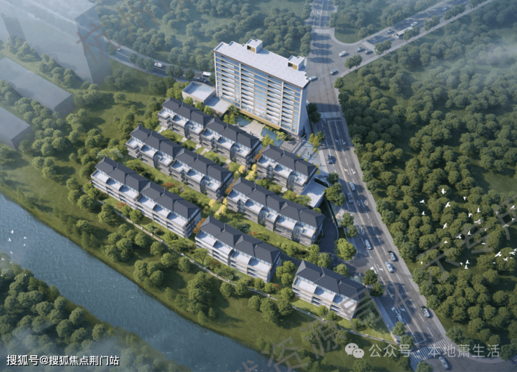 根据方案规划,最北边规划1幢11F高层,剩余7幢均为4F排屋,水系景观位于高层南侧,高层标准层高3米。