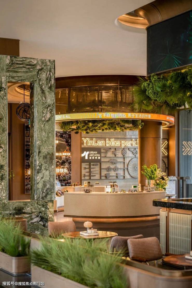 每户家门口都装饰着通高岩板+发光门牌,很像某座星级酒店。 最细节的是连廊天花板,做了精致的弧形吊顶。