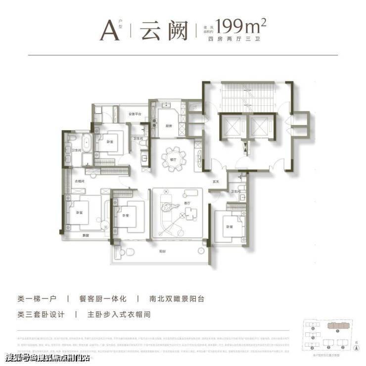 即将首开的建面约199㎡A户型,做到了类一梯一户设计,可实现“电梯厅玄关化”,私密感满分。