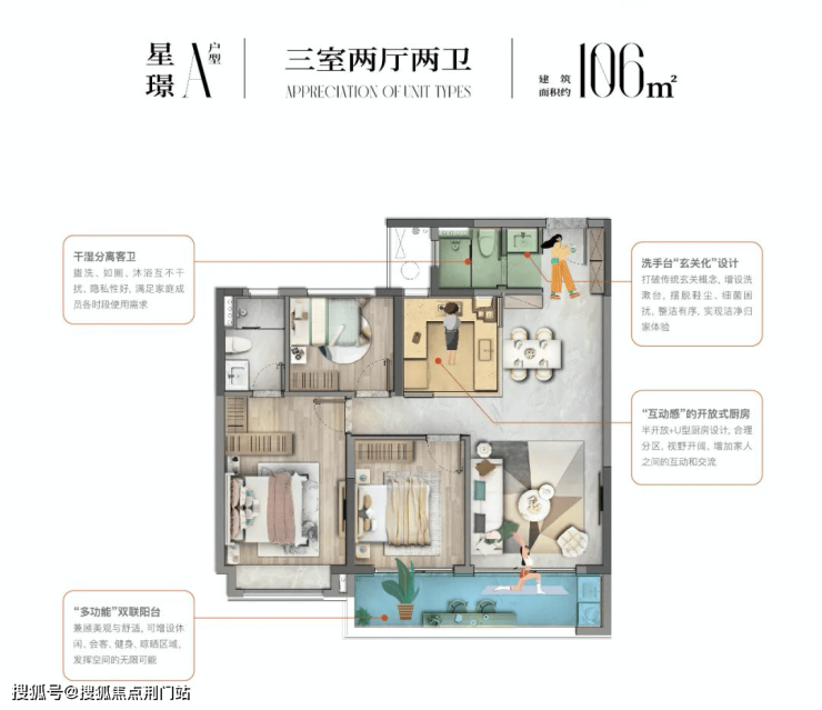 起步建面约106㎡户型,正是经典的三开间朝南格局,南向面宽超10米!