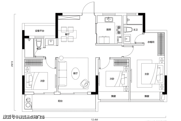 天阳·湖与舍共计打造了建面约100㎡、105㎡、128㎡三个面积段户型,起步约100方,也体现了本项目自带改善特质的特征。明星户型建面 约100㎡户型:面宽超12米,四开间朝南,客厅和三个卧室都朝南,客卧双联阳台、双飘窗,采光相当优越,同面积段少有户型可以做到这样的尺度与格局。
