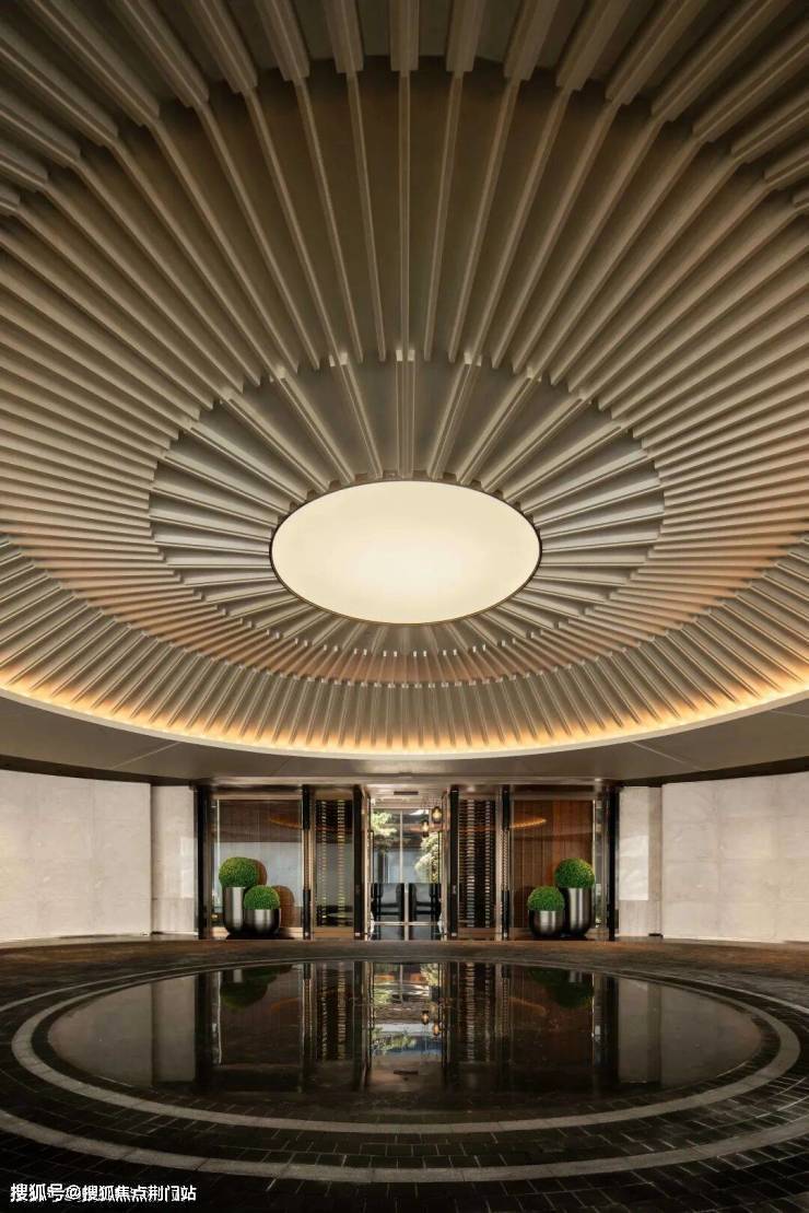 紧接着,步入第二境的舒卷归堂,约13米的挑高,尽显大气磅礴,富有东方意蕴的穹顶设计,让整个空间瞬间有了引人瞩目的焦点。